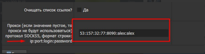Если ваши прокси без авторизации (Логин Пароль), то указываем только IP и PORT.