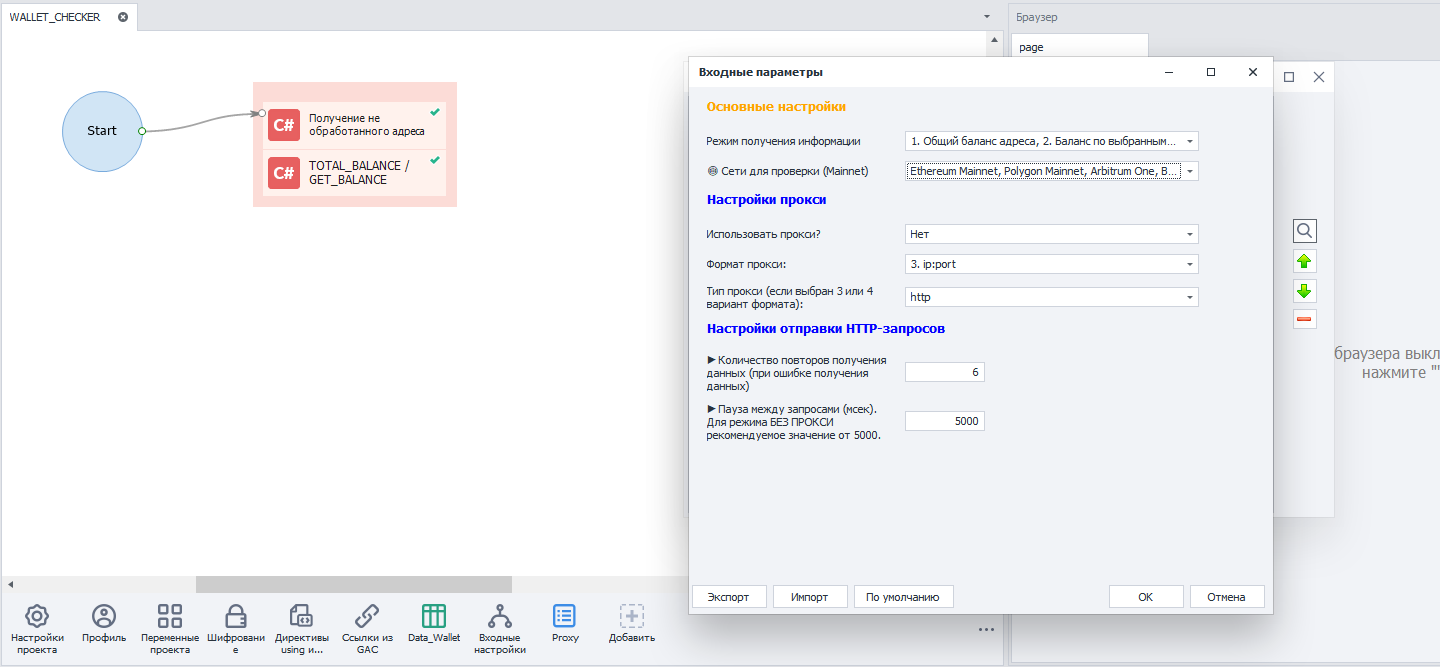 ├─ Создание парсеров/регеров/постеров/рассыльщиков/чекеров с использованием стандартного функционала или C#