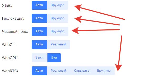 - Широкие возможности по конфигурации подмен браузера.