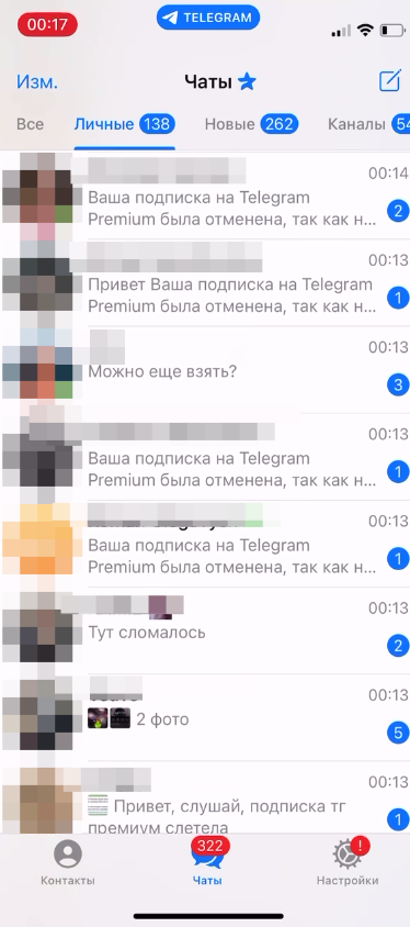 "Ваша подписка на Telegram Premium была отменена, так как не была оплачена пользователем, от которого Вы ее получили.