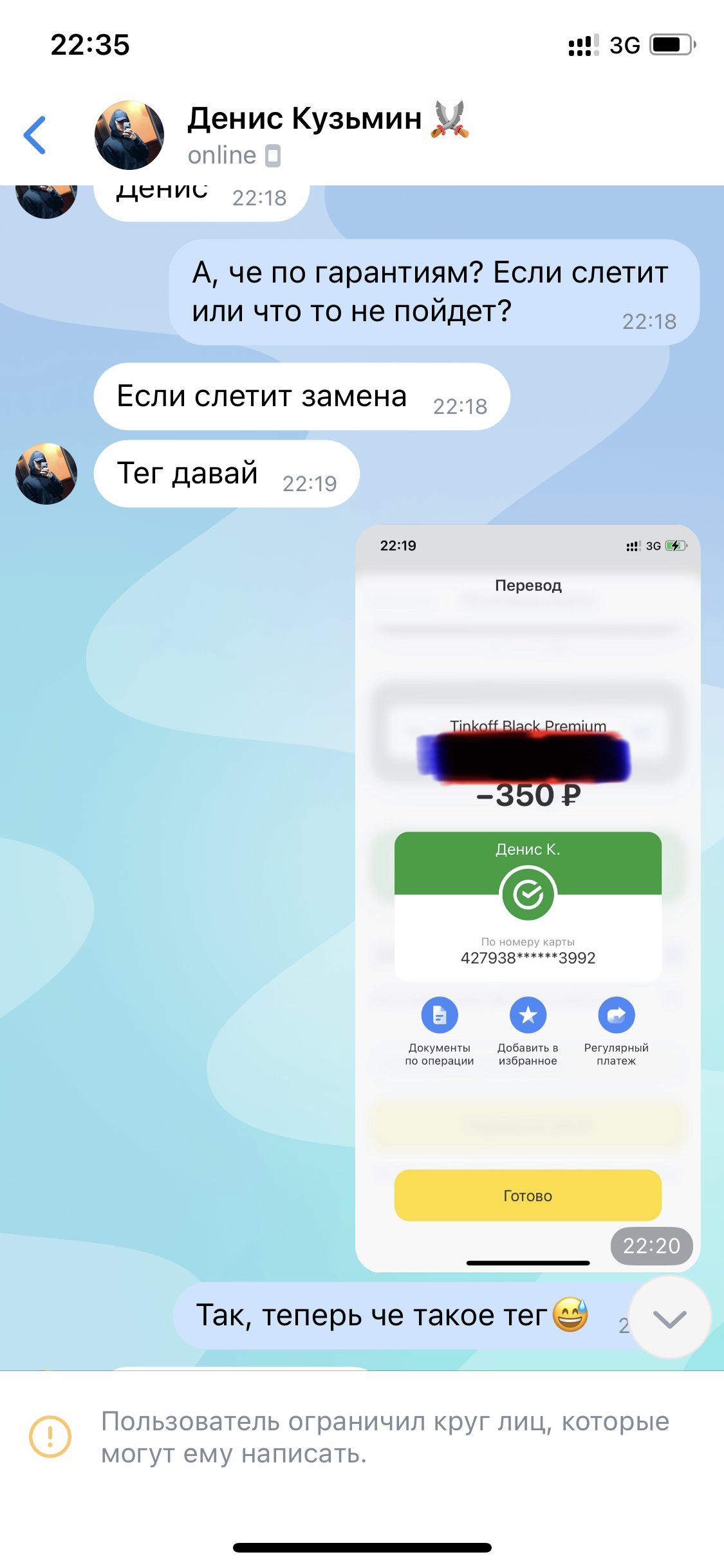 Я никого не скамил. Выше уже объяснил, что политика администрации мессенджера принять такое решение. Я на это никак повлиять не мог, поэтому в случае снятия не может быть манибека