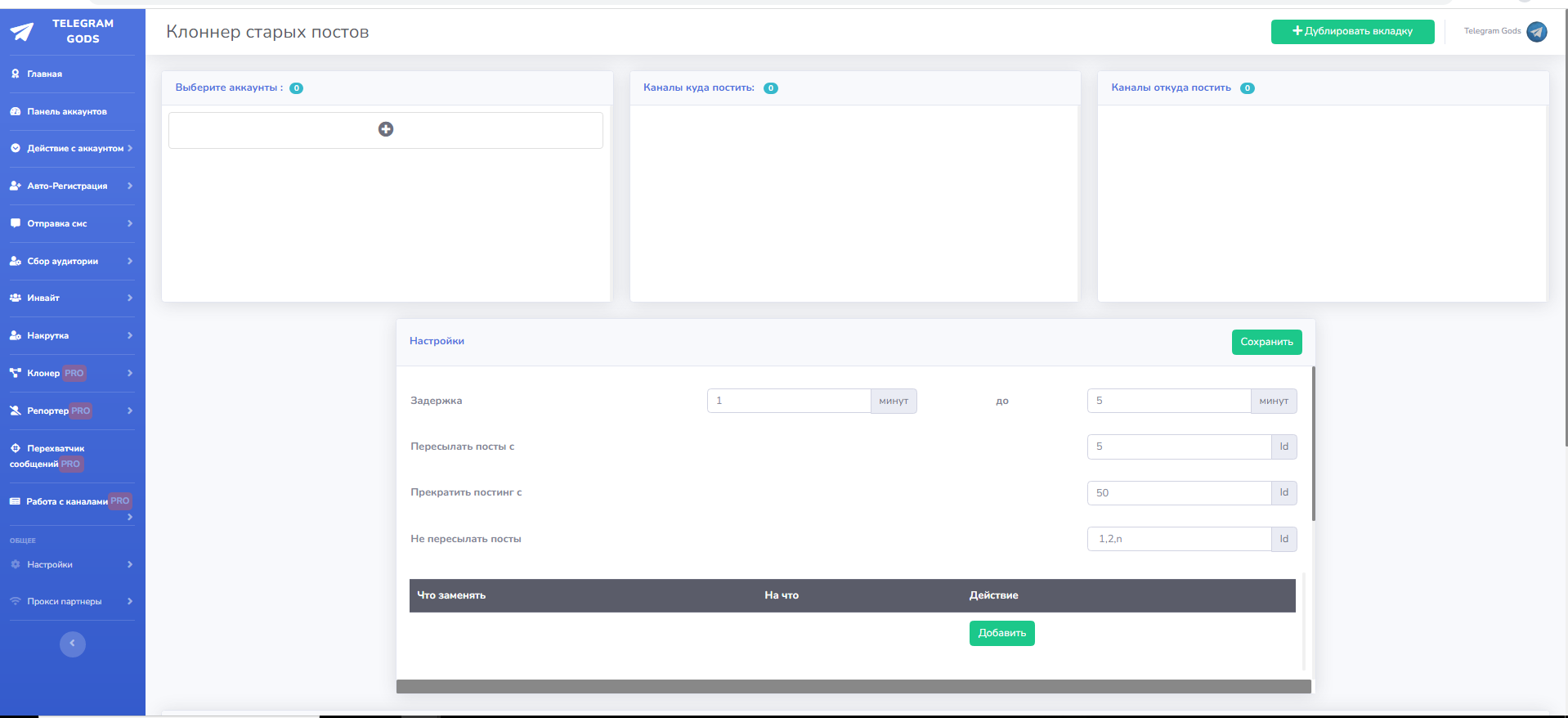 Он позволит вам заменять слова в исходных каналах на желаемые, игнорировать рекламные объявления и выстраивать максимально гибкую систему с использованием сразу сколько захотите каналов доноров!