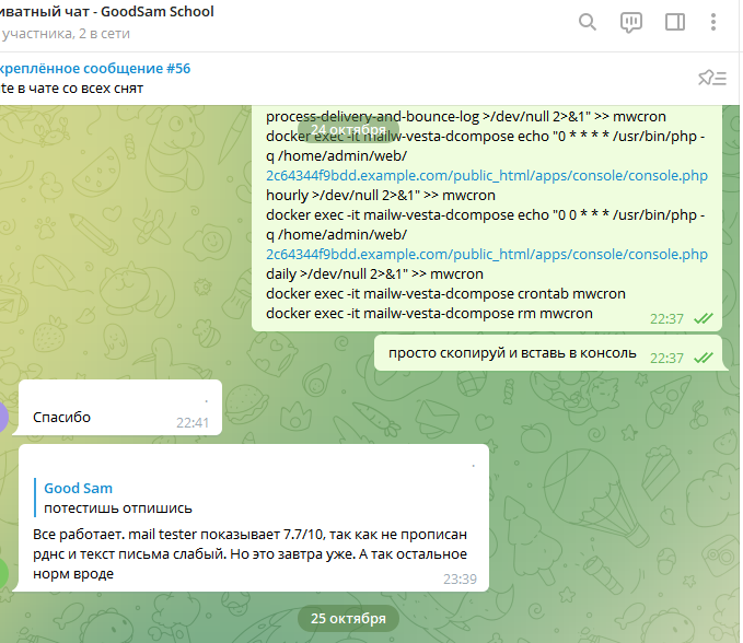 Резюмируя курс, получился затянутым. Но Сэм активно помогал в решении проблем, ученики обмениваются своими ошибками, шаблон за время курса улучшался и дорабатывался. Сейчас самые трудные части за счет шаблона решаются очень быстро. И за день или два можно поднять и настроить почтовый сервер. Только не уверен, что это будет под силу полным новичкам, у них это займет времени больше. Насколько хорошо рассылает и как будет себя вести на объемах я сказать не могу, потому что только начал свой путь рассылок с poste, думаю оставлю в будущем пост об этом и поделюсь этим опытом.