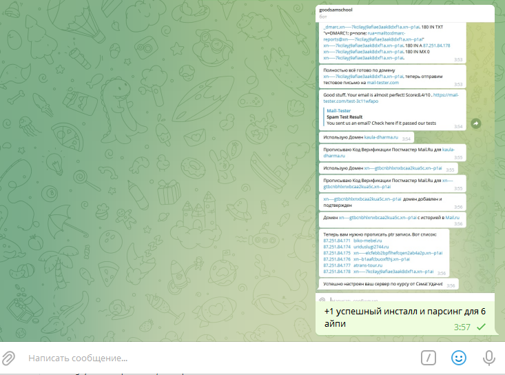 Следующий этап, это настройка линукс сервера. Вкратце надо выбрать ip на сайте хостинг провайдера и через их интерфейс назначить их своему серверу. Там же и прописывается PTR. После этого нужно прописать в нескольких файлах на сервере ip, и создать нужный конфиг. Который у меня забрал несколько дней. Сеть постоянно падала, поддержка хостинга несколько раз переустанавливала сервер, а запросы в службу поддержку занимают время, отвечают они не сразу, а спустя некоторое время, не быстрое время. По итогу из поддержки скинули ссылки на статьи, в одной из них было написано, что на некоторые сервера они ставят другой вид сетевых интерфейсов. И в общем неделя ушла, пока подобрал, закупился, начал настраивать. Бился, с этими искусственными интеллектами, и решил тактически отступить. Удалил сервер и вернул часть денег, порядка 65 долларов, чего хватило на впс за 25 баксов и на 28 ip. И на впс настройки были такие же, как и в курсе. Поэтому эта проблема у меня была преодолена. Если кто хочет в грязной форме взять судьбу, то лучше сначала проходить курс, как он есть, а уже потом играть во взрослые игры.