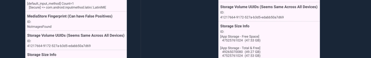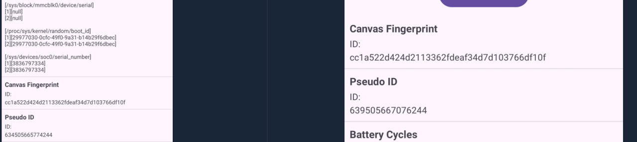На скорую руку добавил подмену Android ID, где были утечки.