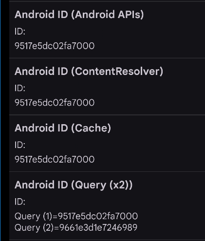 Для теста запустил несколько разных приложений. В моей выборке никто всеми этими нестандартными методами получения Android ID не воспользовался, но для перестраховки можно внедрить. Хотя будет ли это нужно хоть каким-то приложениям сказать сложно.
