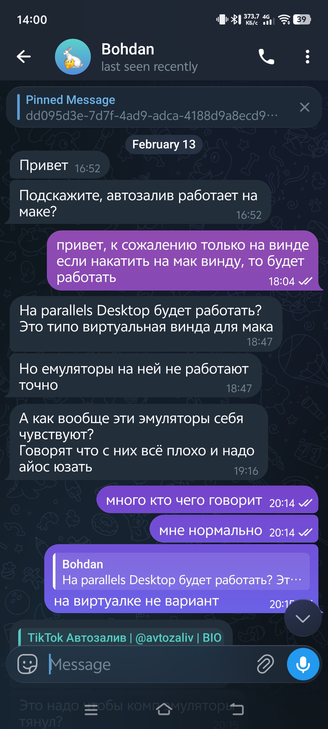 по любым вопросам пишите мне в телеграм: @avtozaliv