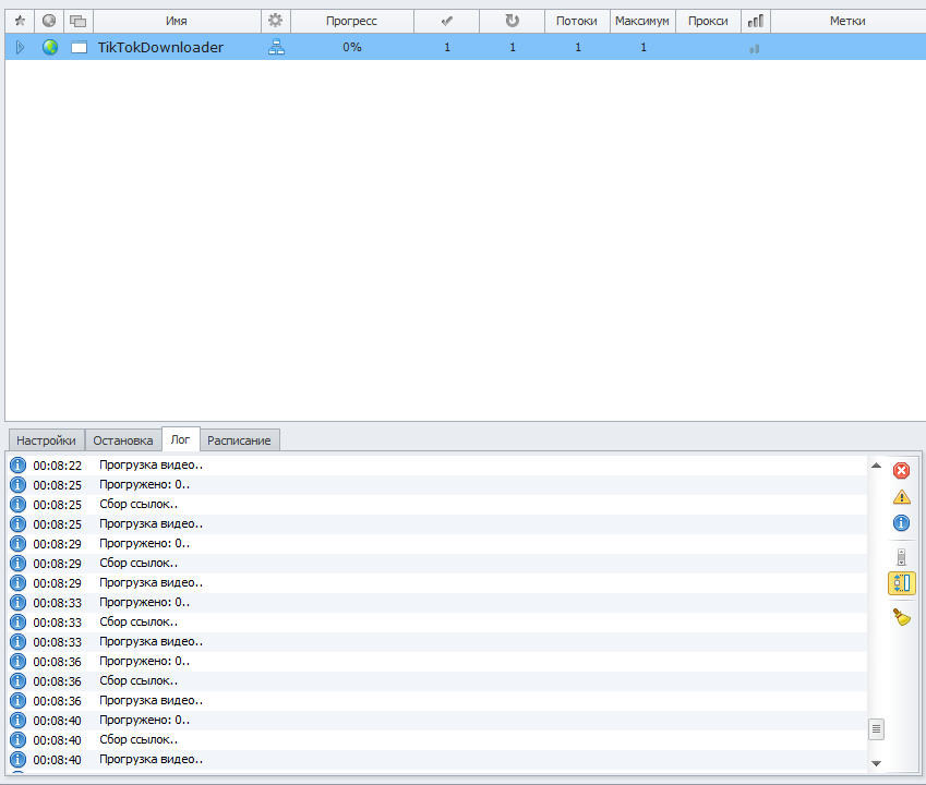 1. В вэб-версии тиктока отображаются только последние ~30, поэтому больше спарсить не получается. Возможно, существуют какие-то хитрые способы подобраться, но я к этому еще не пришел. Но это, скорее всего, уже другой шаблон с другой логикой будет.. если будет.Для режимов "По тэгу" и "Из профиля" скачивается ~30 последних видео по каждому запросу.