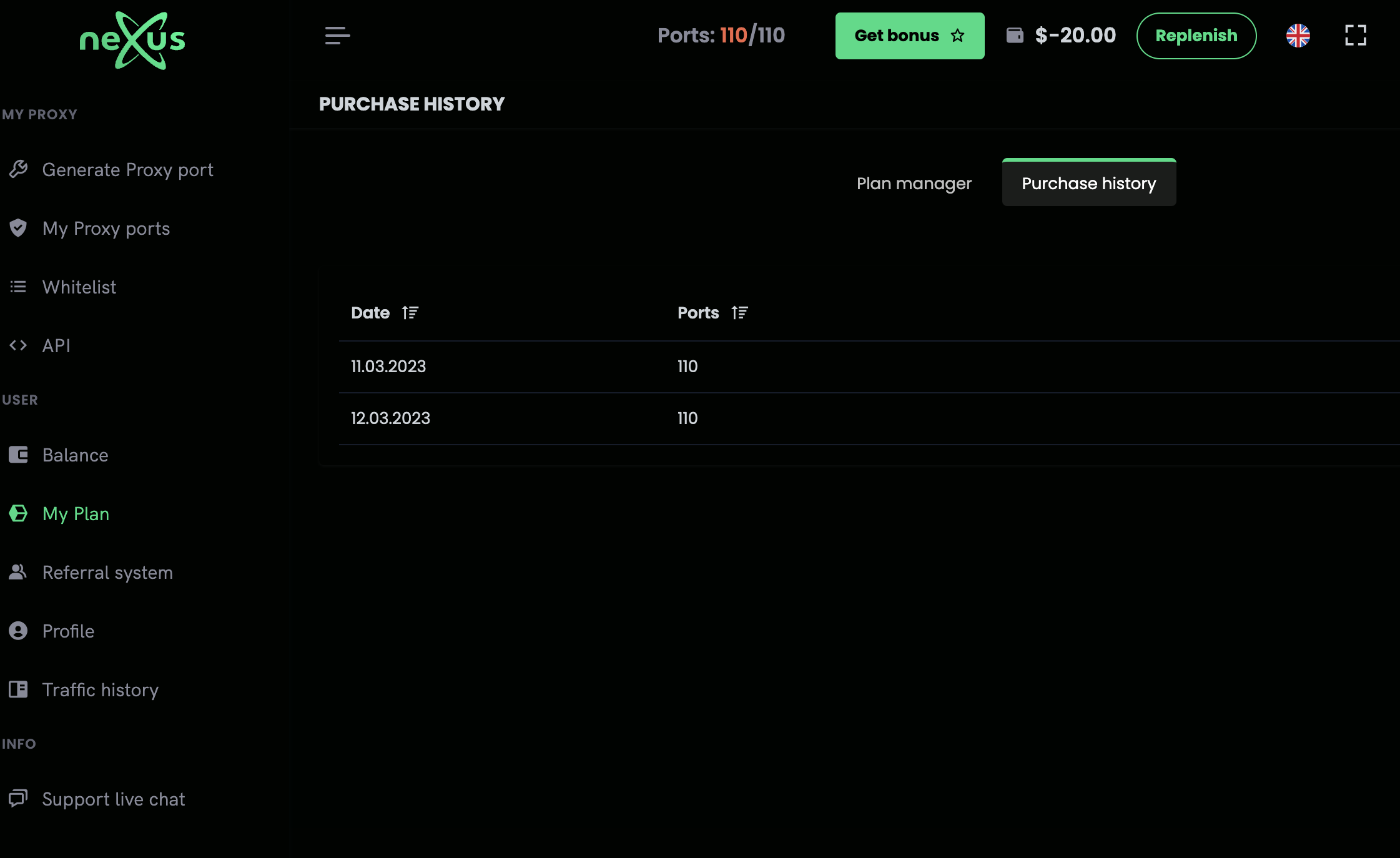 Очень странная работа сервиса. Зачисляют бонус по промокоду, потом тут же его забирают. По итогу Баланс минусовой и прокси перестают работать. (((