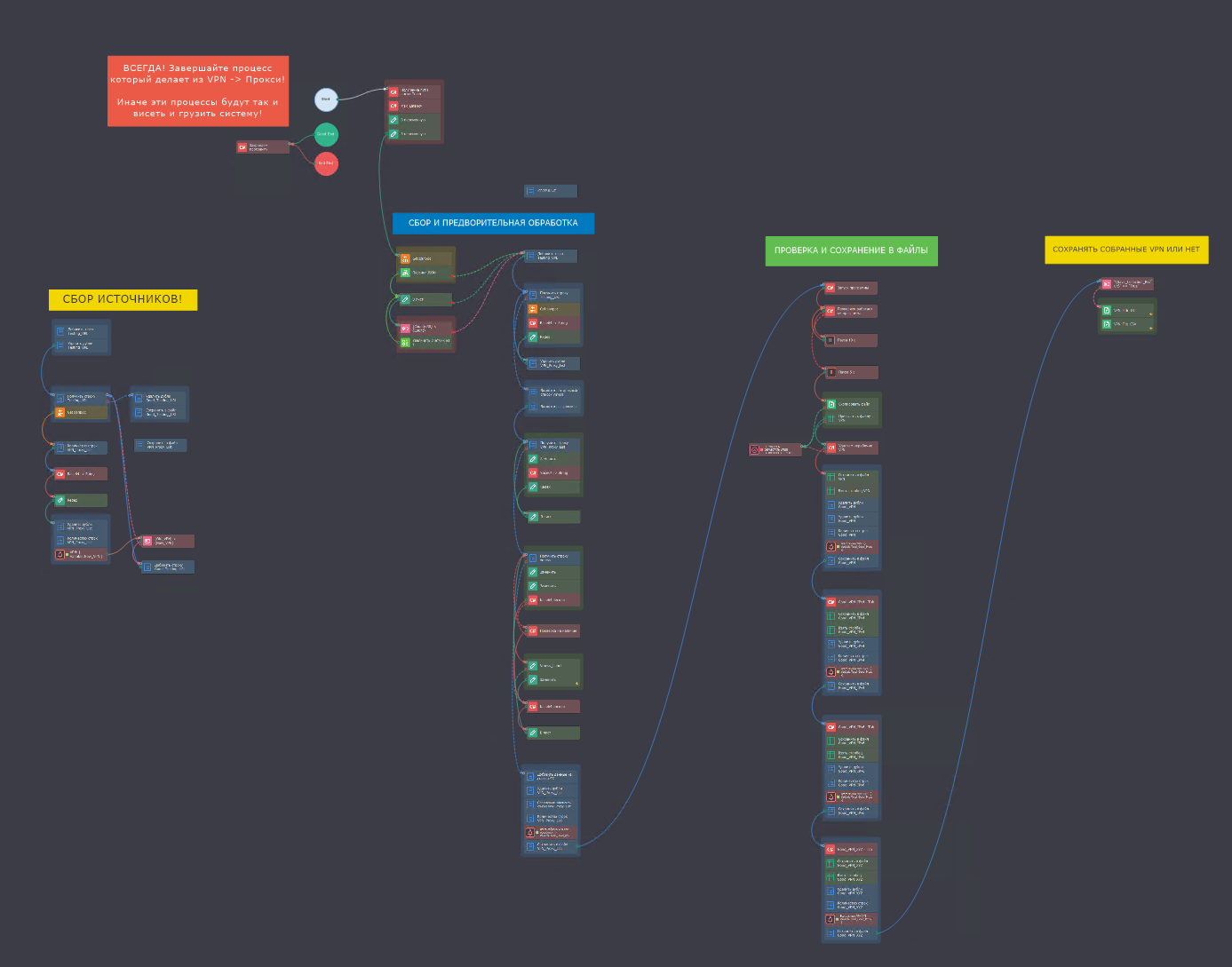 - Опция сохранения всех обнаруженных VPN — активируйте функцию "Сохранять собранные VPN" в настройках, и система будет сохранять в отдельных файлах все найденные VPN (включая нерабочие) для ваших специфических задач.
