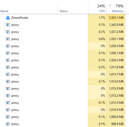 у меня вот просто тоже стоит лимит 400 мб я запускаю 10 потоков там они работают допустим 2 часа выполняют одно и тоже и зенка начиет с кажым часом все больше и больше оперативы хавать