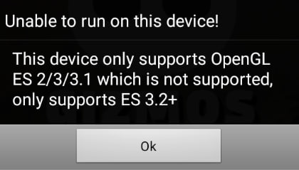 6585_Лягуша Client Регистрация 19.10.2018 Сообщения 211 Благодарностей 77 Баллы 28 30.04.2024 #1 Добрый день! Может кто сталкивался с такой проблемой? При запуске приложения выходит ошибка: Код: Unable to run on this device This device only supports OpenGL ES 2/3/3.1 which is not supported, only supports ES 3.2+ Эмулятор MEMU Системы пробовал разные и Win 8.1 и Win 10
