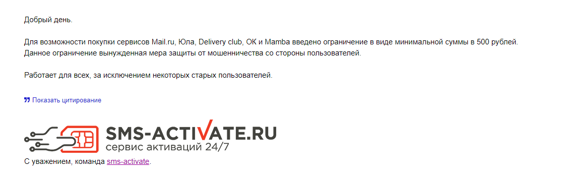 Данное в ведение не только у меня а у многих пользователей https://sms-activate.ru/ Посмотреть вложение 55377