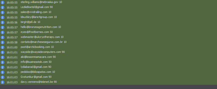 Проверку эмейлов можно запускать как в один поток, так и многопоточно. В папке "результат" расположены два текстовых файла для сохранения результатов проверки. В файл "валидные.txt" добавляются валидные эмейлы. В файл "невалидные.txt" добавляются невалидные эмейлы.