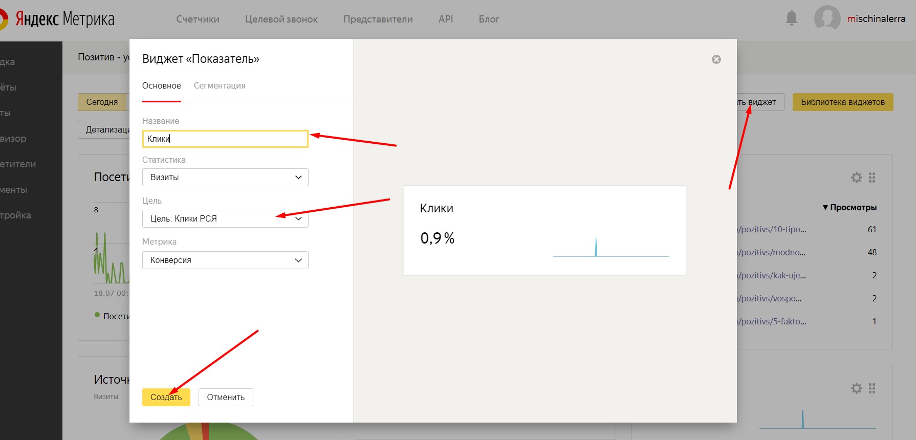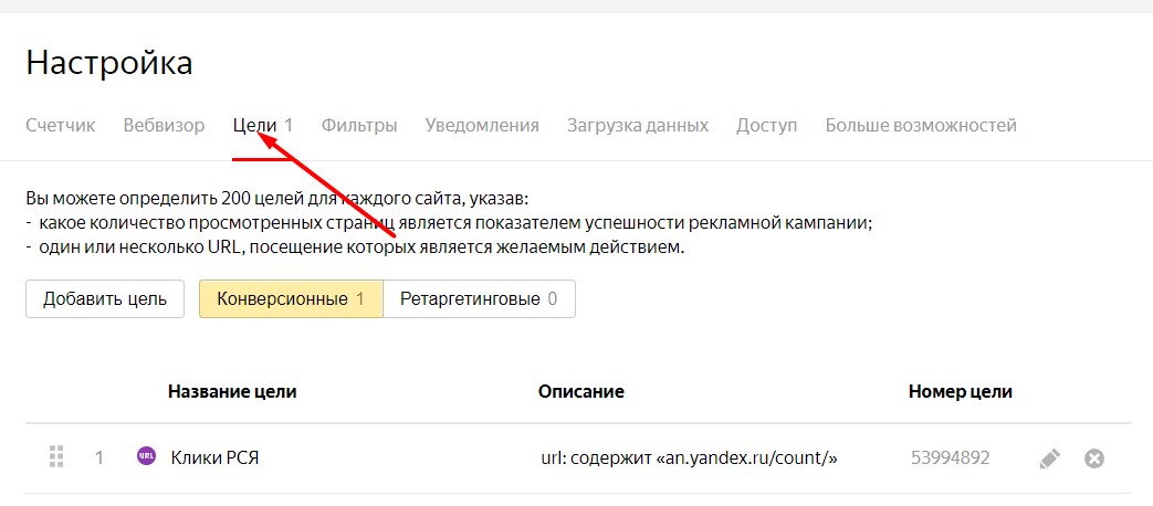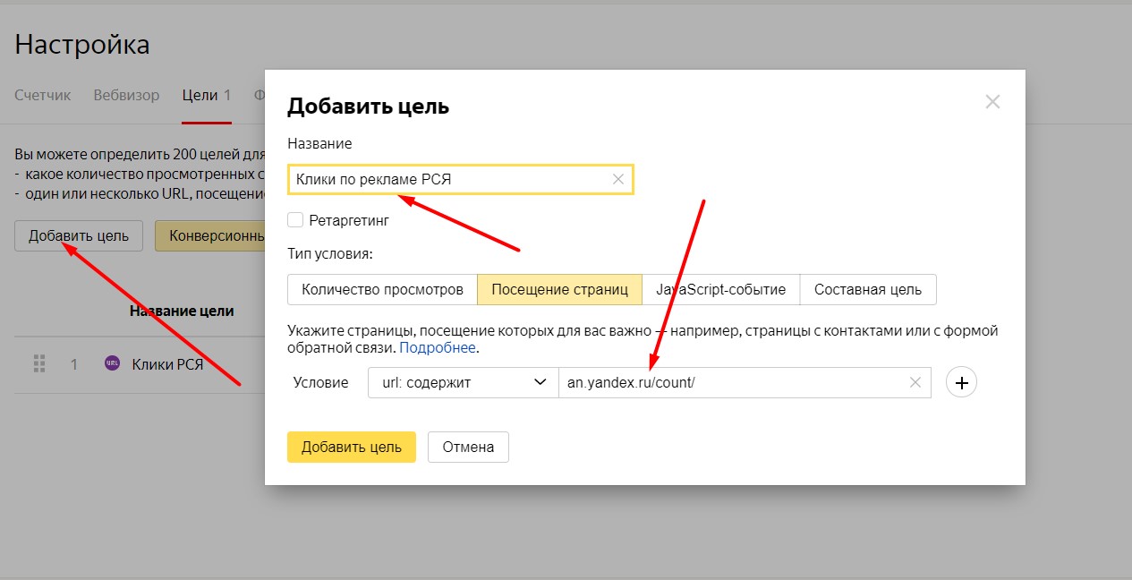 Добавляем цель и вписываем такую строку: an.yandex.ru/count/