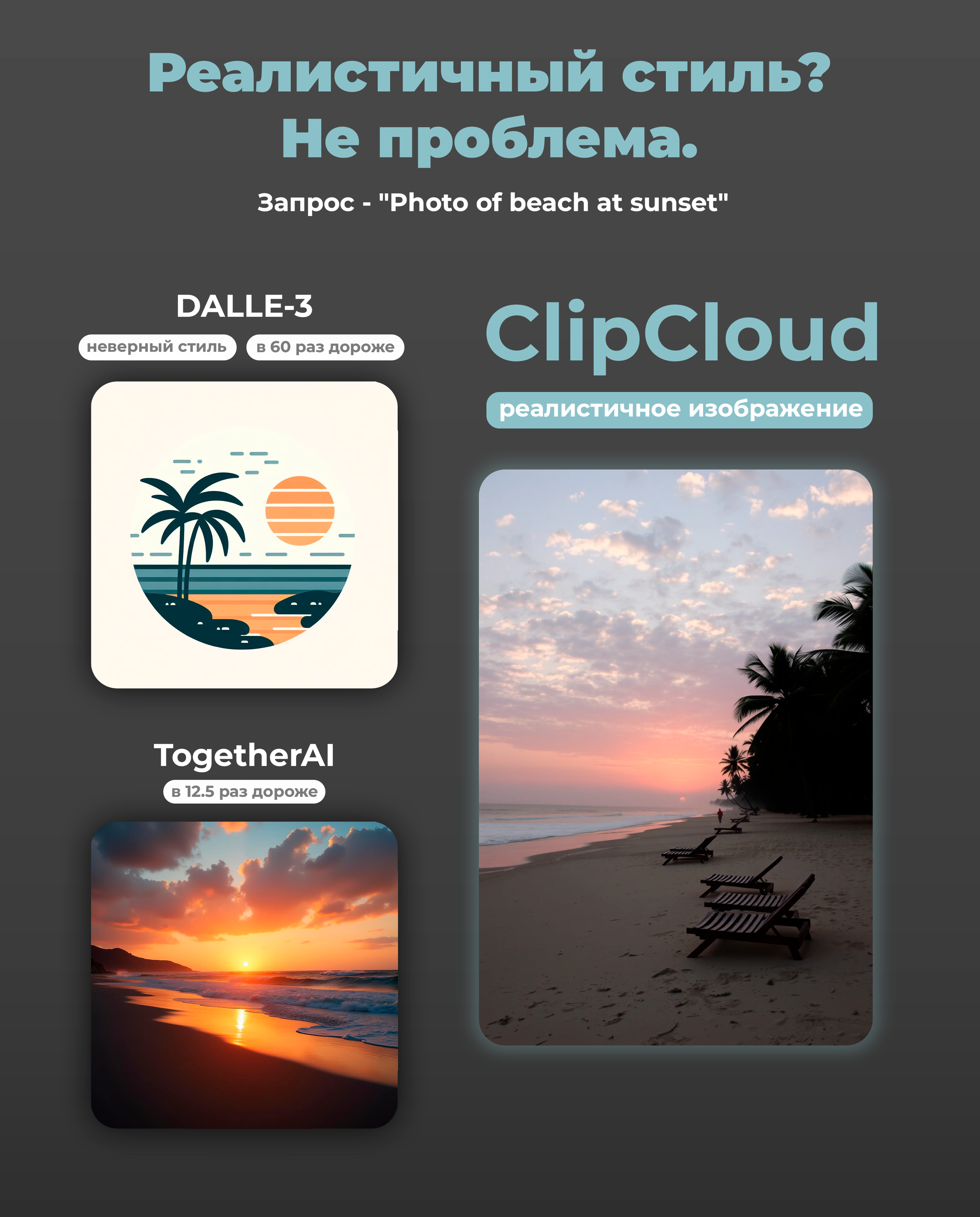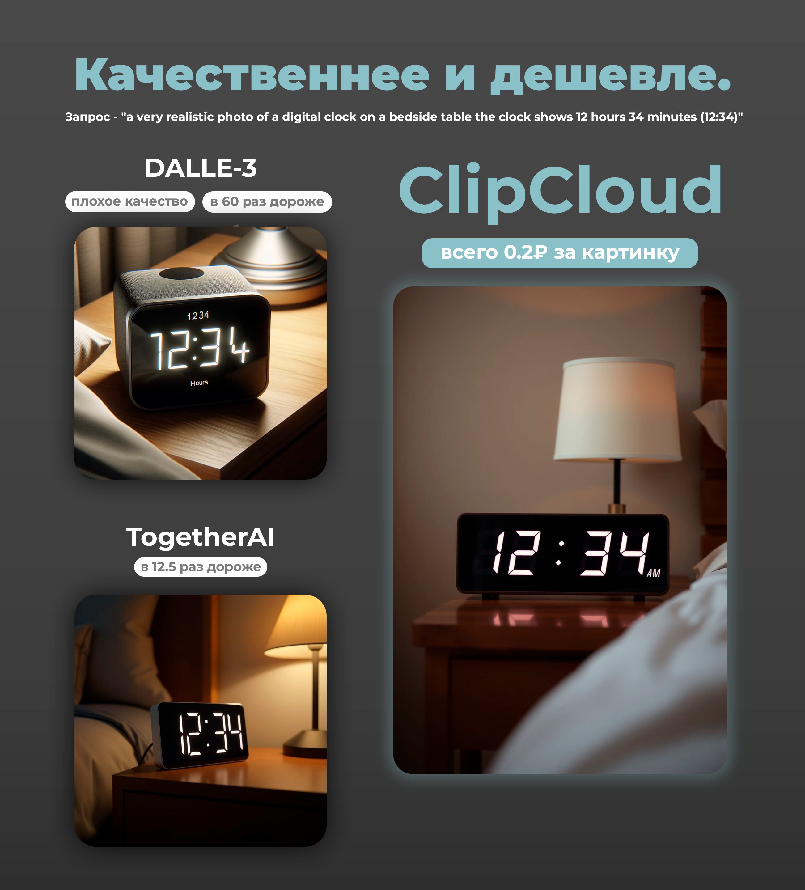 -Добавлен сервис генерации изображений «ClipCloud». Данный сервис имеет возможность бесплатного использования (до 25 картинок в сутки), генерирует в довольно хорошем качестве, а стоимость генерации в платном режиме в разы ниже, чем у конкурентов (около 0.2р или $0.002 за картинку). Подробнее -
