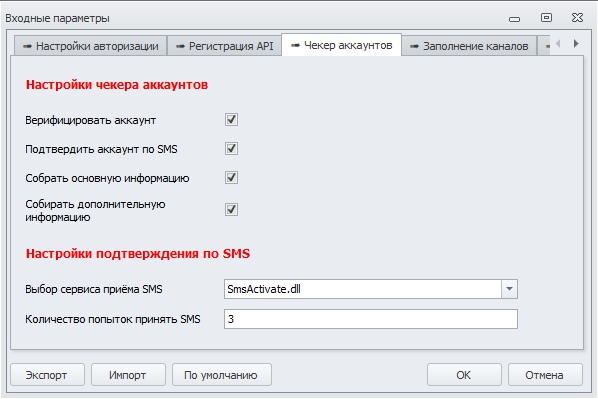 • Подтверждение аккаунтов по SMS