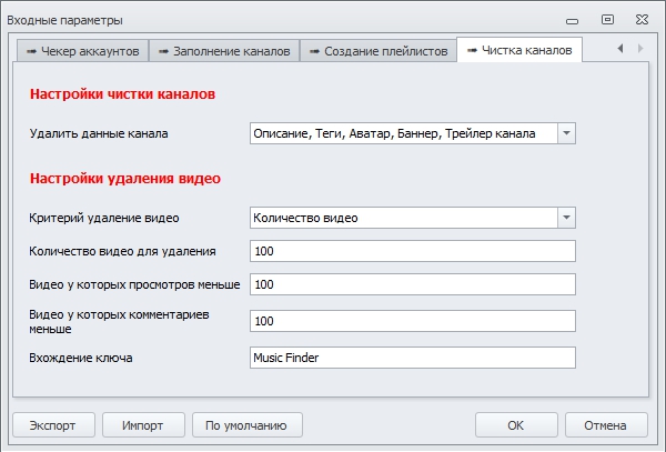 • Очистка каналов от информации, видео или плейлистов по критериям