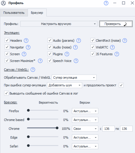 На всякий случай проверьте генерируемый отпечаток, например с помощью browserleaks.com/canvas, и если он один и тот же при разных выполнениях, то поставьте первой позицией Шум.