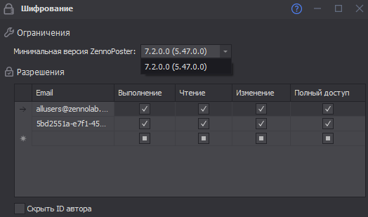 Точно,из-за c# (Обратите внимание, что наличие C# экшена в проекте автоматически повышает минимальную версию шаблона в блоке шифрования до 7.2.0.0 )