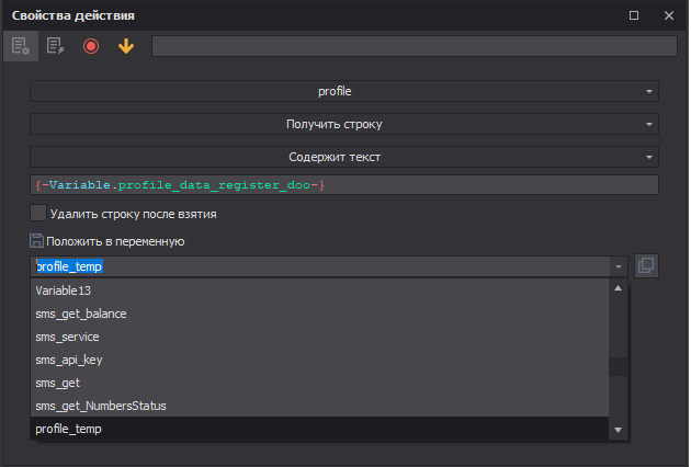 сделайте сортировку переменных по алфавиту в друпдауне в Свойствах действия, иначе при большом количестве переменных найти нужную реальный гемор. а так же сортировку по алфавиту. при добавлении переменной по правой кнопки мыши.