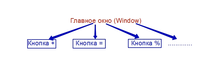 Т.е. по сути есть главное окно и на нам разбросано множество контролов. Для подробного объяснения откроем калькулятор.