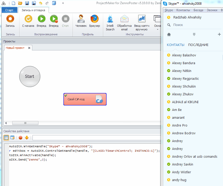 Думаю хватит нам калькуляторов и всяких хеллоу-вордов. В ранних статьях я описывал работу в скайпе http://zennolab.com/discussion/threads/zennoposter-i-skype-desktop-versija.23980/. Однако у нее есть масса ограничений, которые мы щас попробуем обойти.